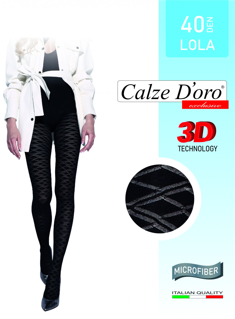 CALZE DORO 40 den rugalmas, mintás harisnyanadrág, erősített nadrágrész nélkül (tanga fazon,