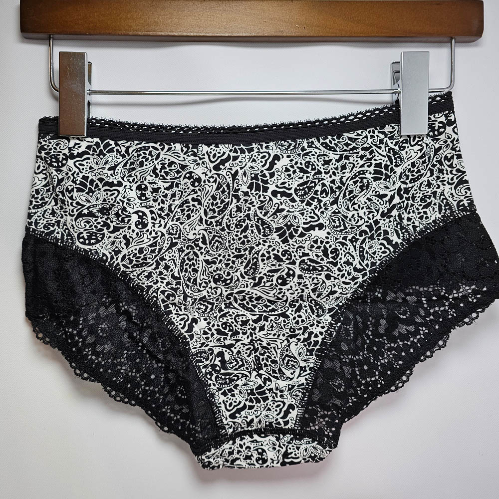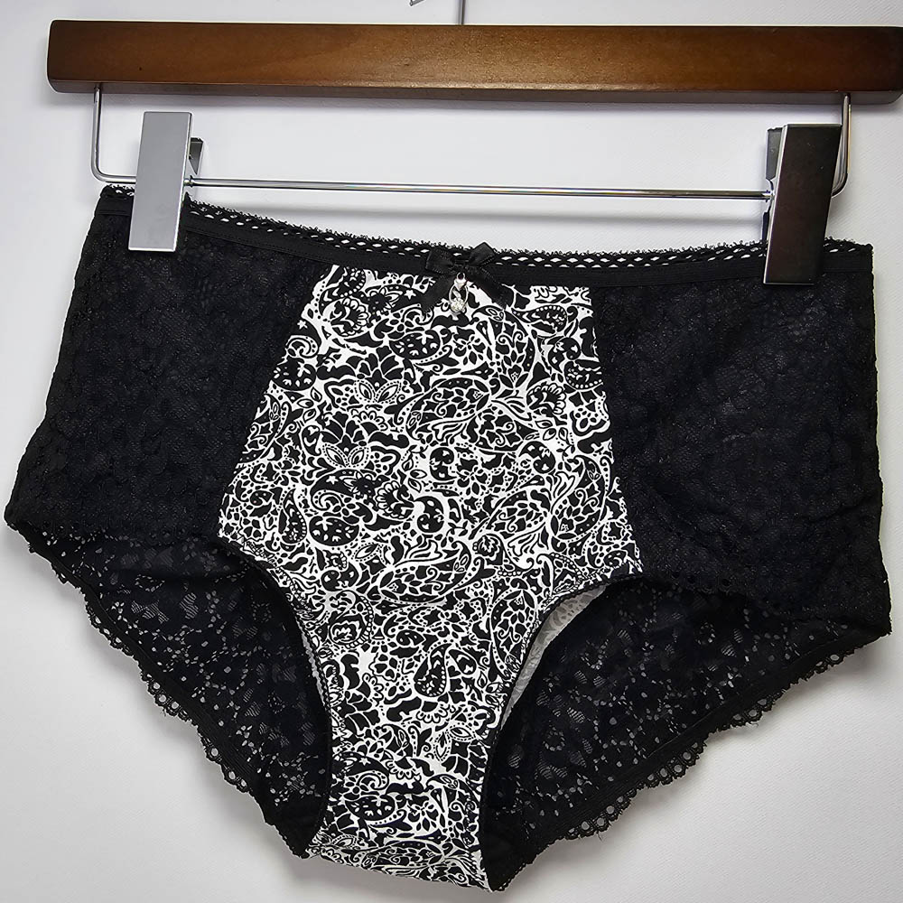 Női széles oldalú pamut-csipke mintás alsó (magas állású)