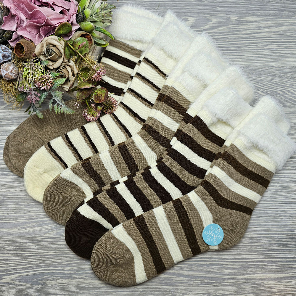 Női szőrös belsejű vastag zokni csíkos mintával 5 pár/csomag