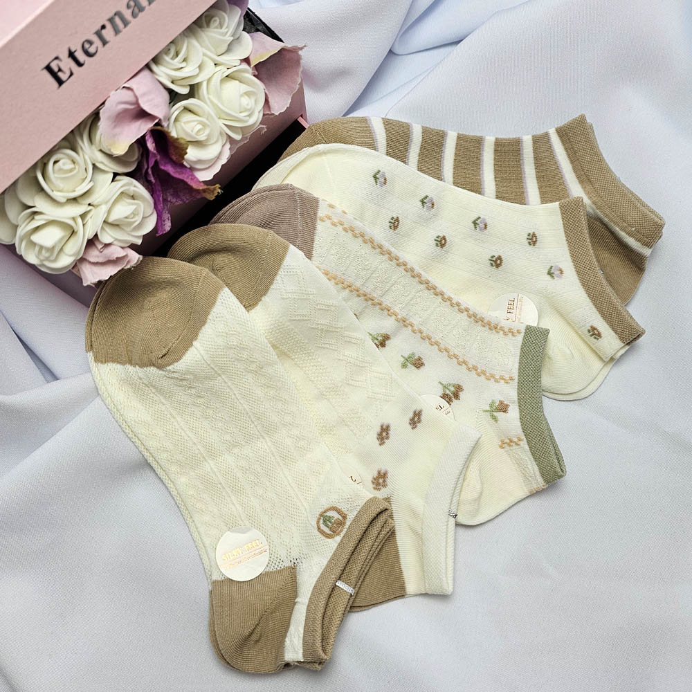 Női titokzokni, anyagában mintás pasztell színben 5 pár/cs