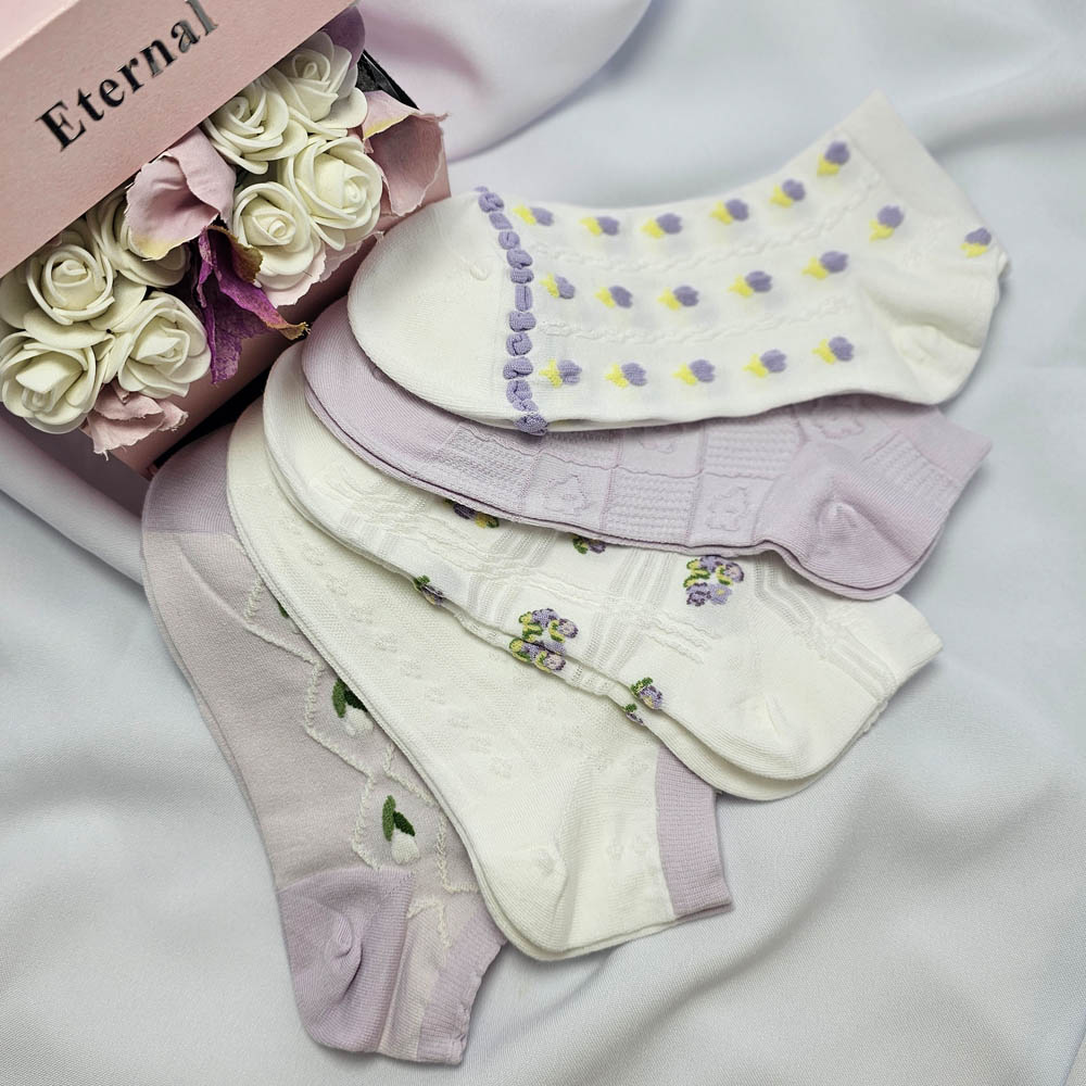 Női titokzokni, anyagában mintás virág motívumokkal 5 pár/cs