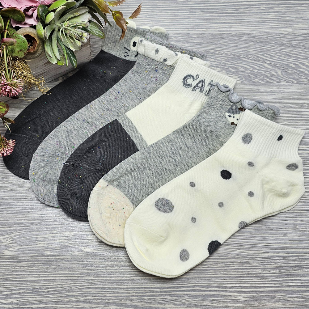 Női titokzokni cicás-pöttyös 5 pár/cs