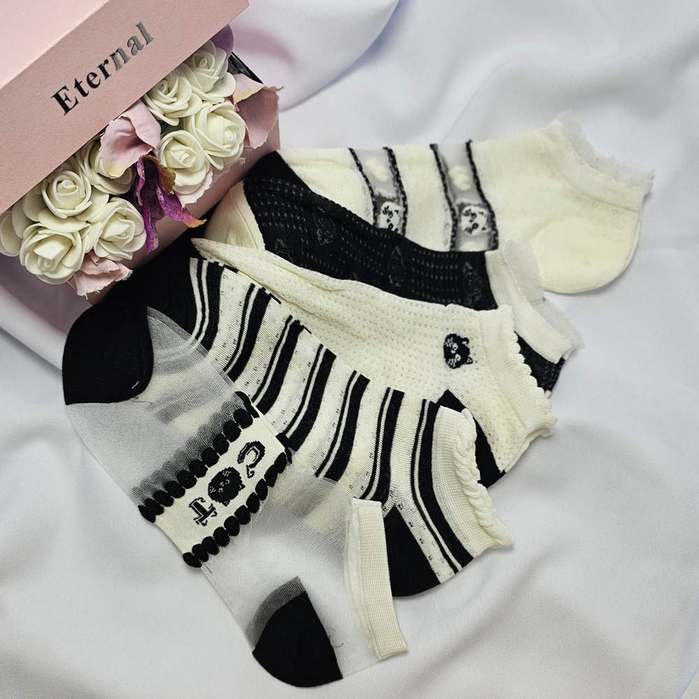 Női titokzokni, hálós-pamut anyag, fodros szélű 5 pár/cs
