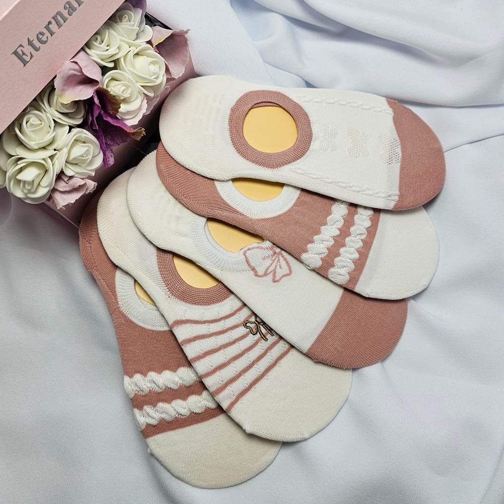 Női titokzokni mélyebben kivágott, masni mintás szilikon sarokrésszel, 5 pár/cs