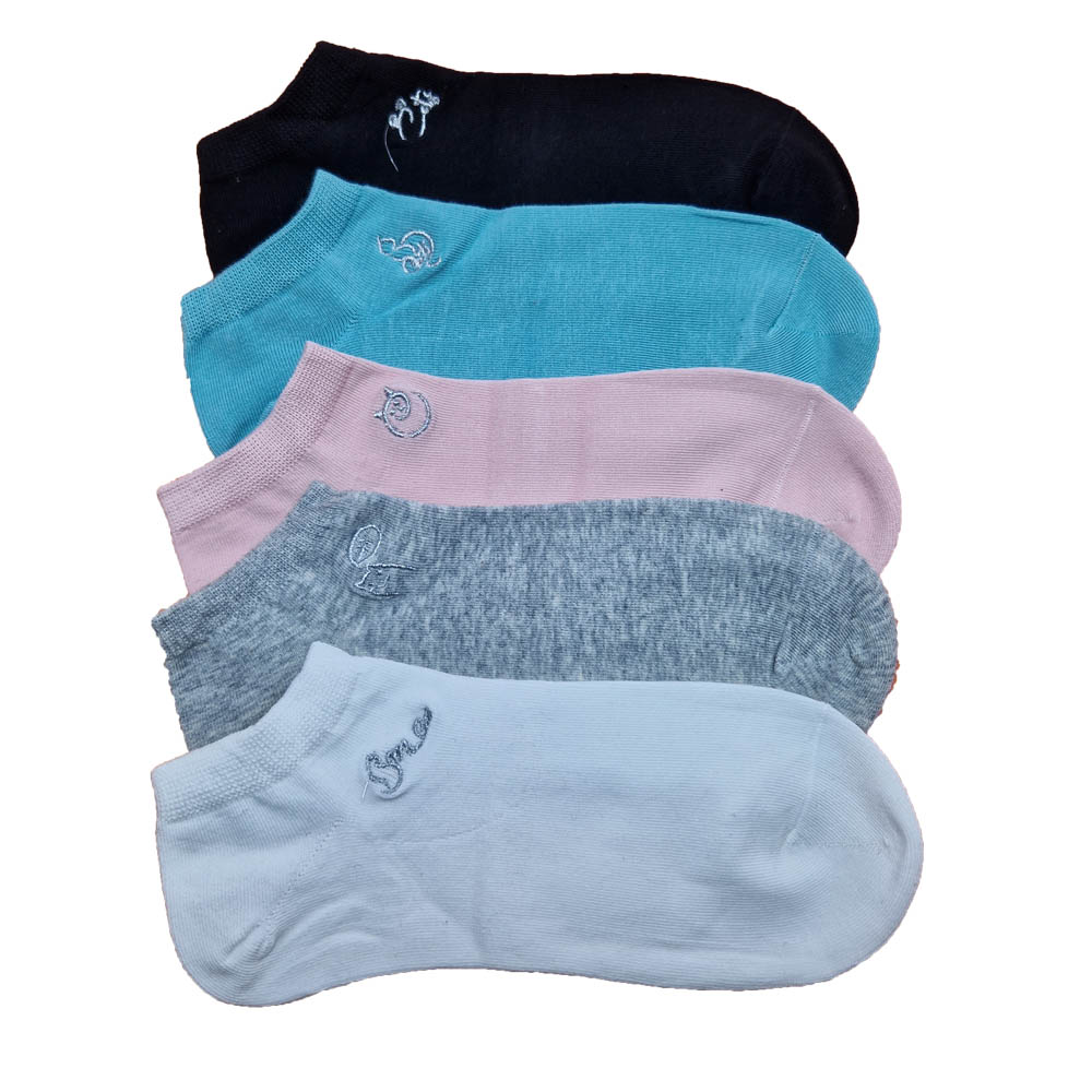 Női Titokzokni SZÍNES-EGYSZÍNŰ hímzett kis mintával 5 pár/cs
