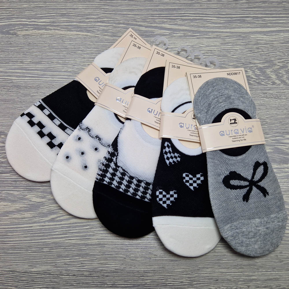 Női titokzokni szívecske mintás mélyebben kivágott, szilikon sarokrésszel, 5 pár/cs