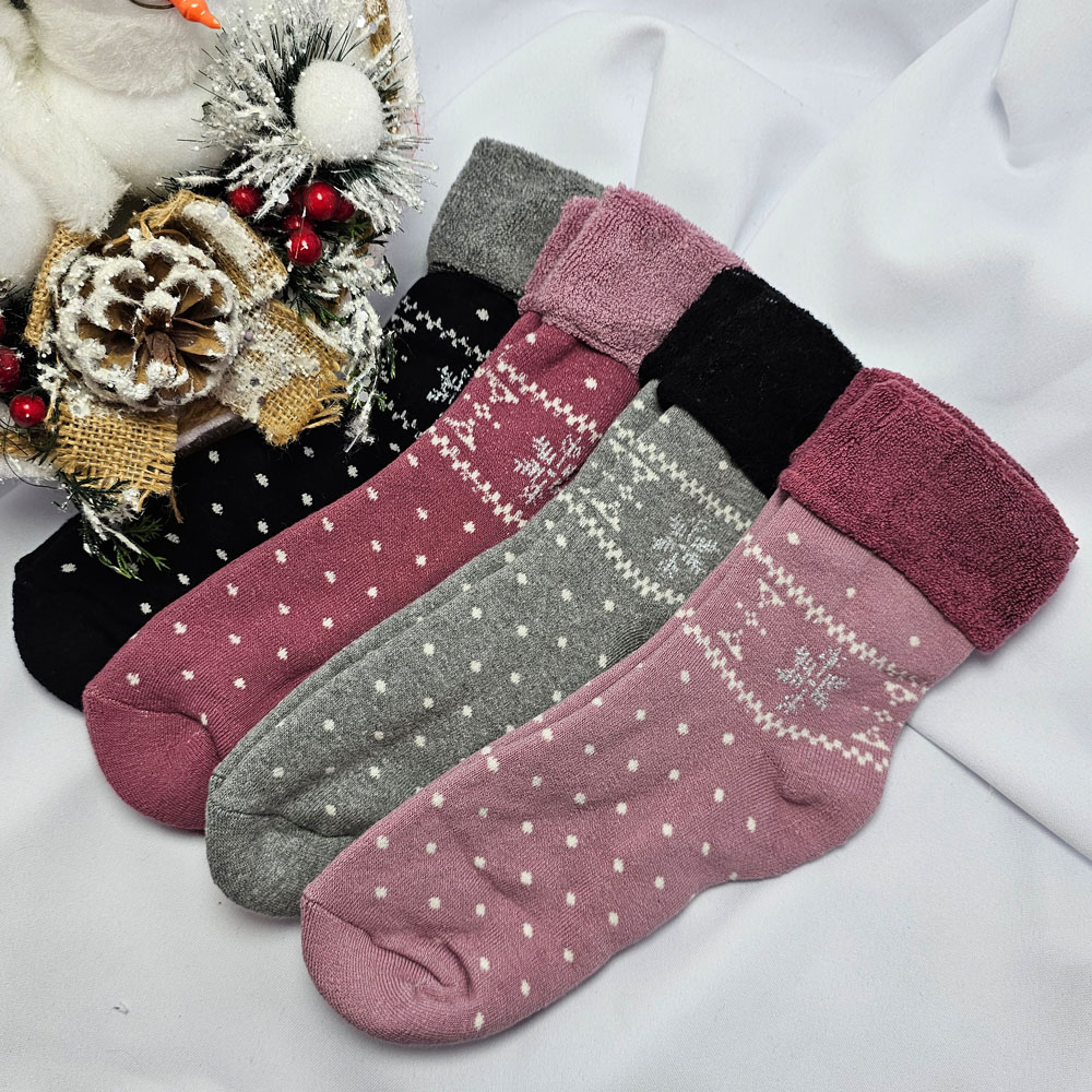 Női vastag hópihés pöttyös mintás gumi nélküli zokni 4 pár/cs