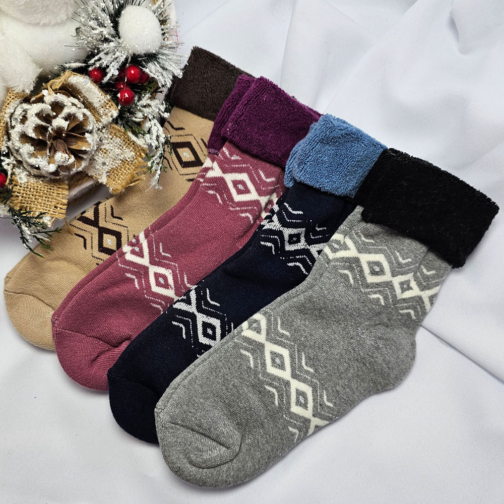 Női vastag mintás zokni visszahajtós-gumi nélküli 4 pár/cs
