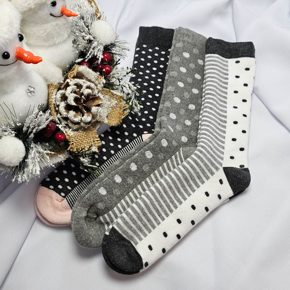 Női VASTAG zokni 3 pár/cs csíkos-pöttyös