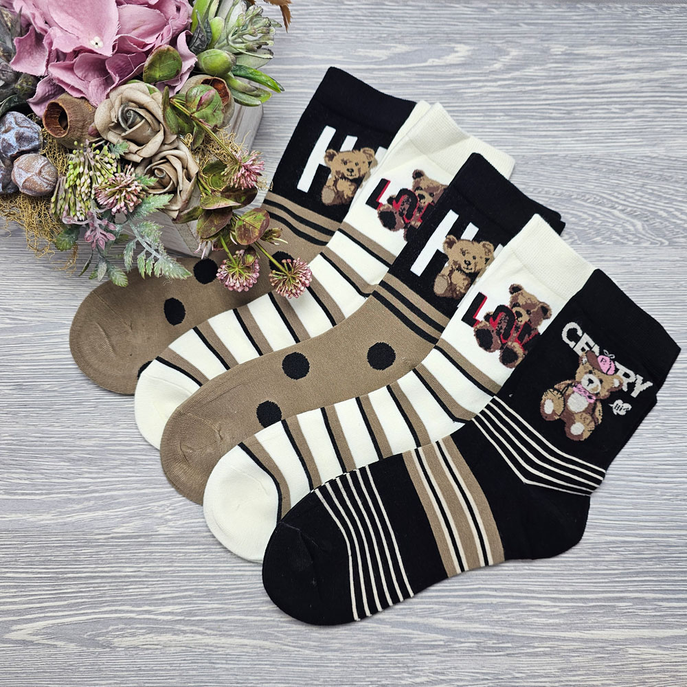 Női zokni maci mintás 5 pár/csomag!
