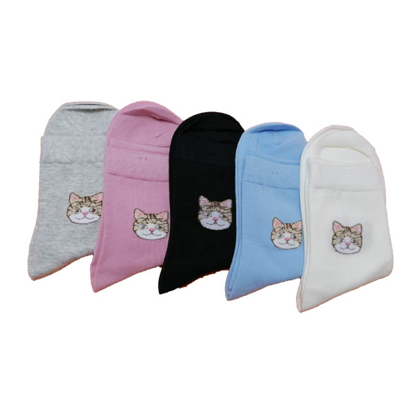 Női vékony normál szárú vegyes színű cicafej mintás zokni!