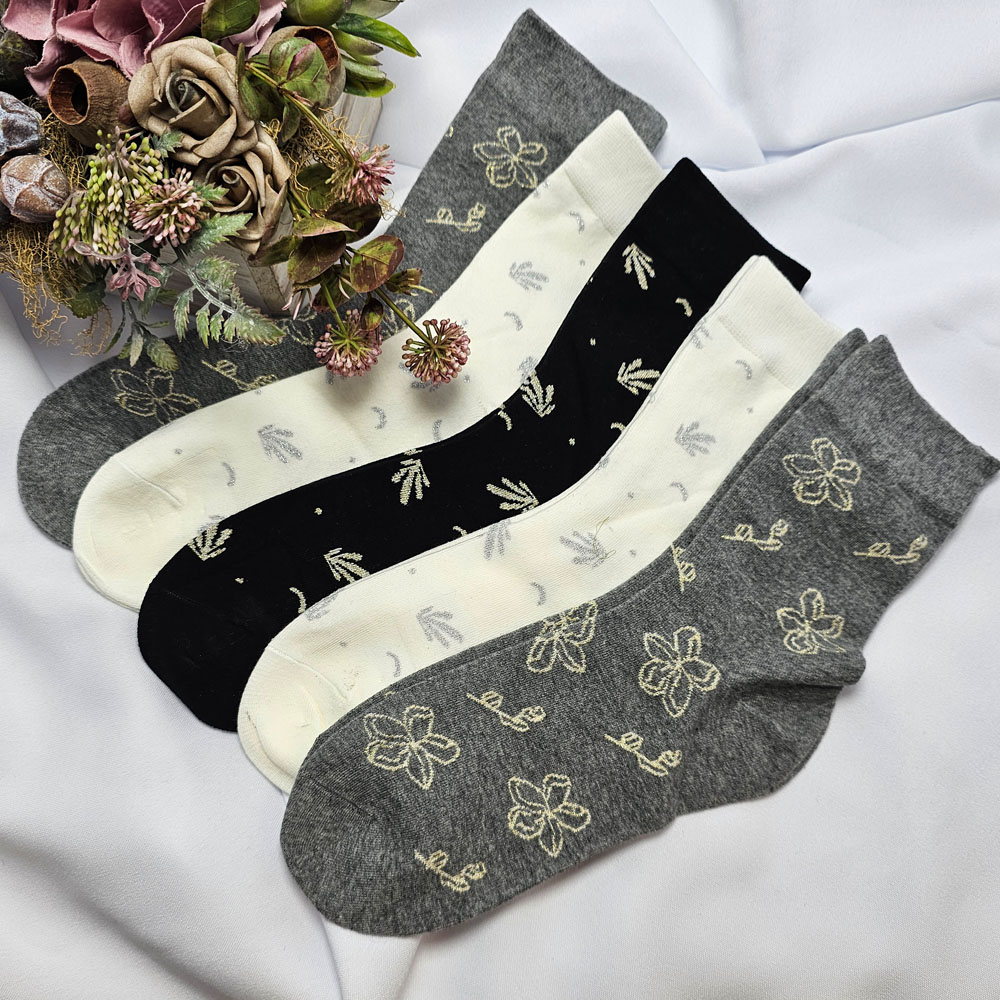Női zokni virág mintás 5 pár/csomag! (lurexes)