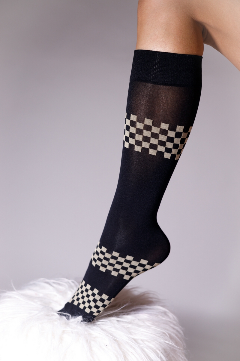 NYLON mintás EXKLUZÍV Térdzokni 50 DEN YVONNE FEKETE BÉZS KOCKÁS. Nézd meg az egyedi térdzokni kínálatunkat! Találsz egyszínű és mintásakat is! A mai divatnak megfelelő kiváló minőségű magyar termék
