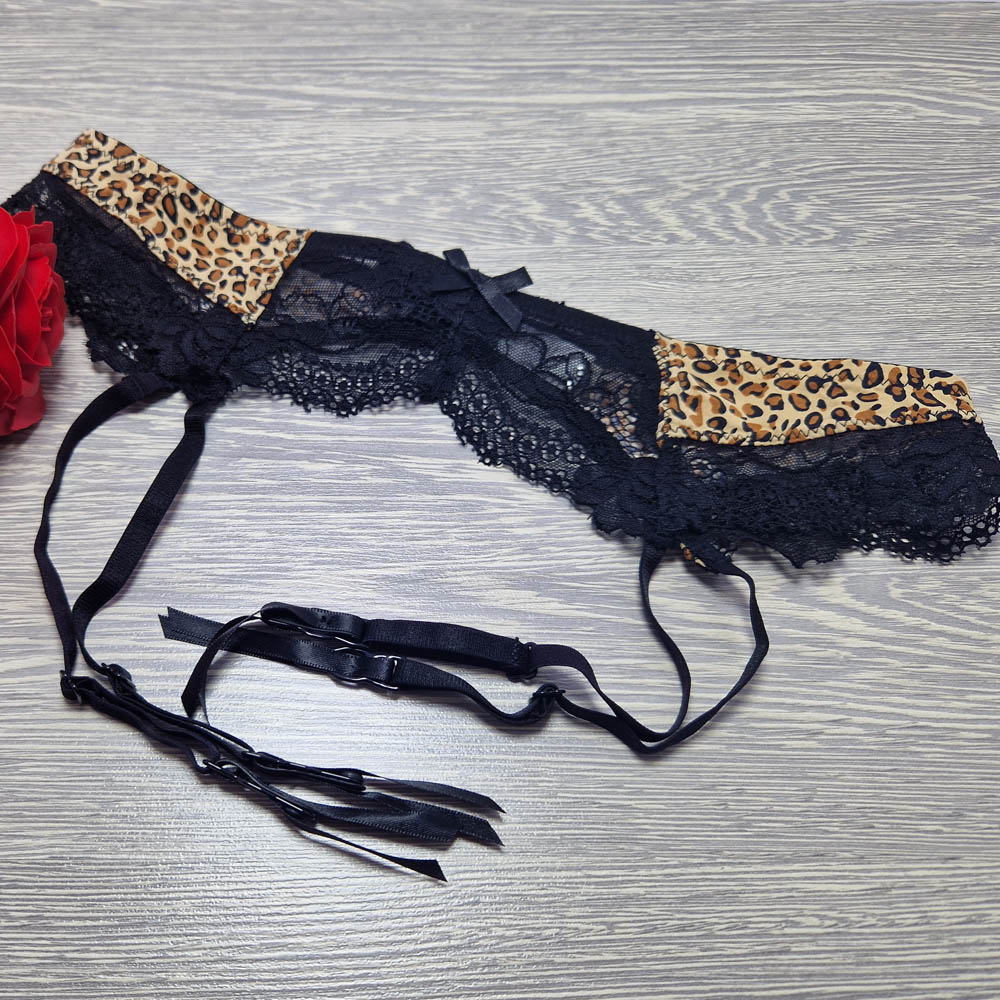Párduc mintás fekete-bézs harisnyatartó Lemila!