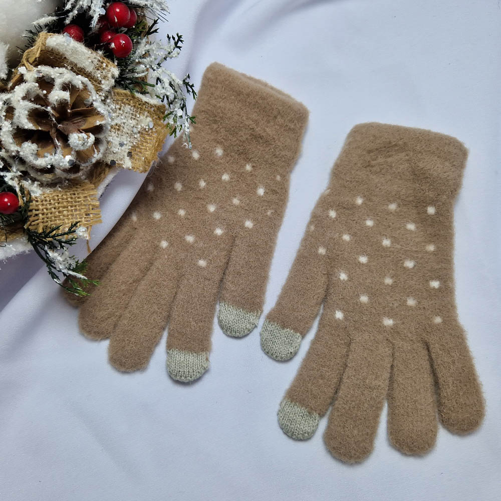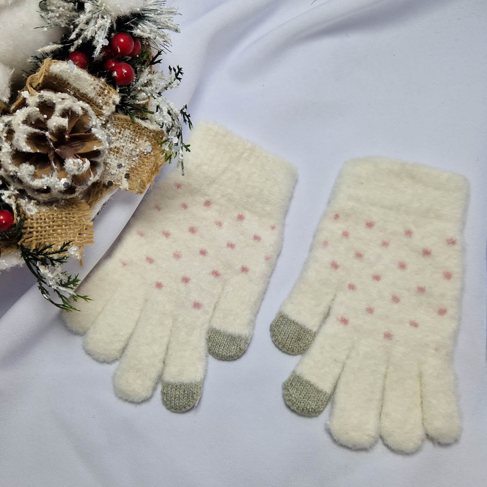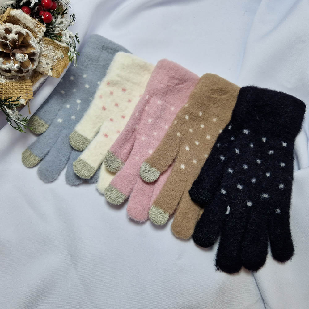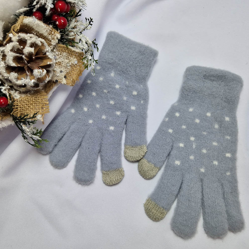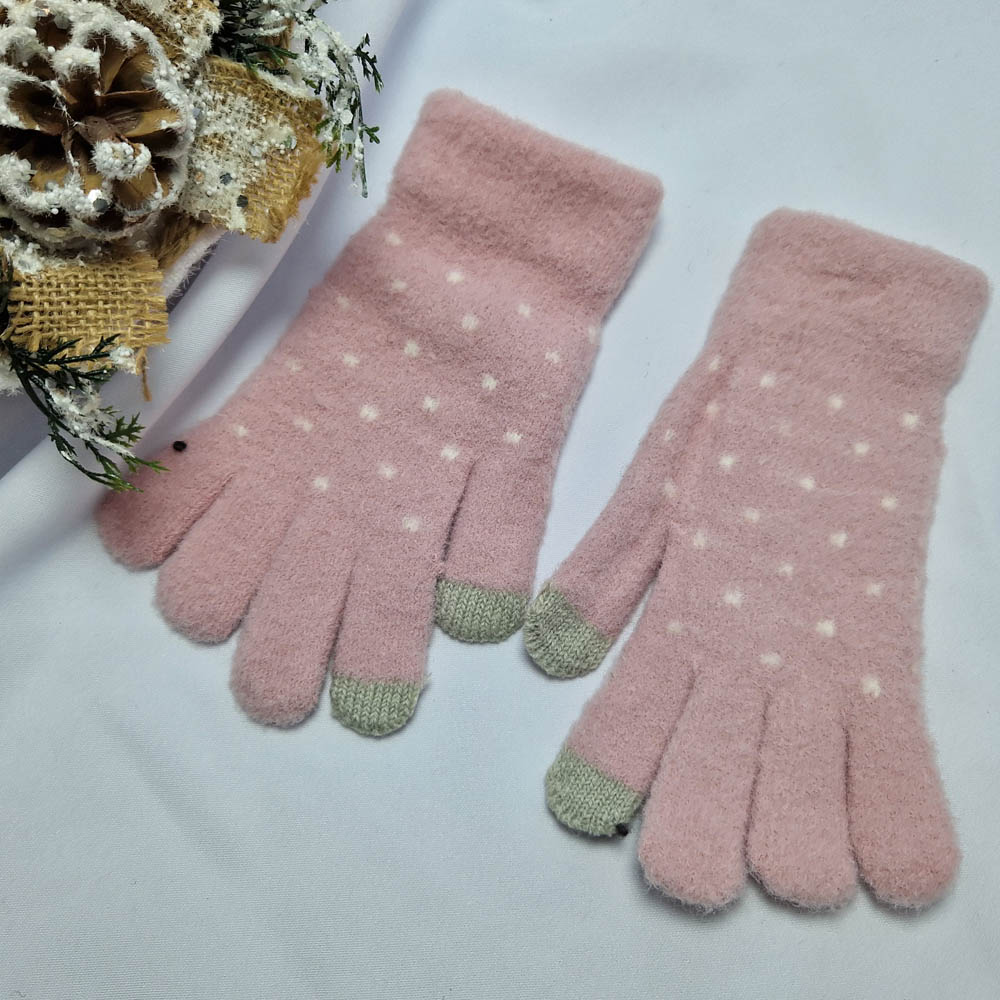 Pihe-puha 5 ujjas pöttyös mintás kesztyű (érintőképernyős készülékekhez)