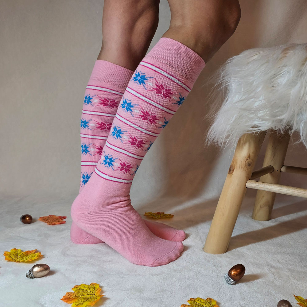 Szuntex norvég mintás VASTAG térdzokni rózsaszín