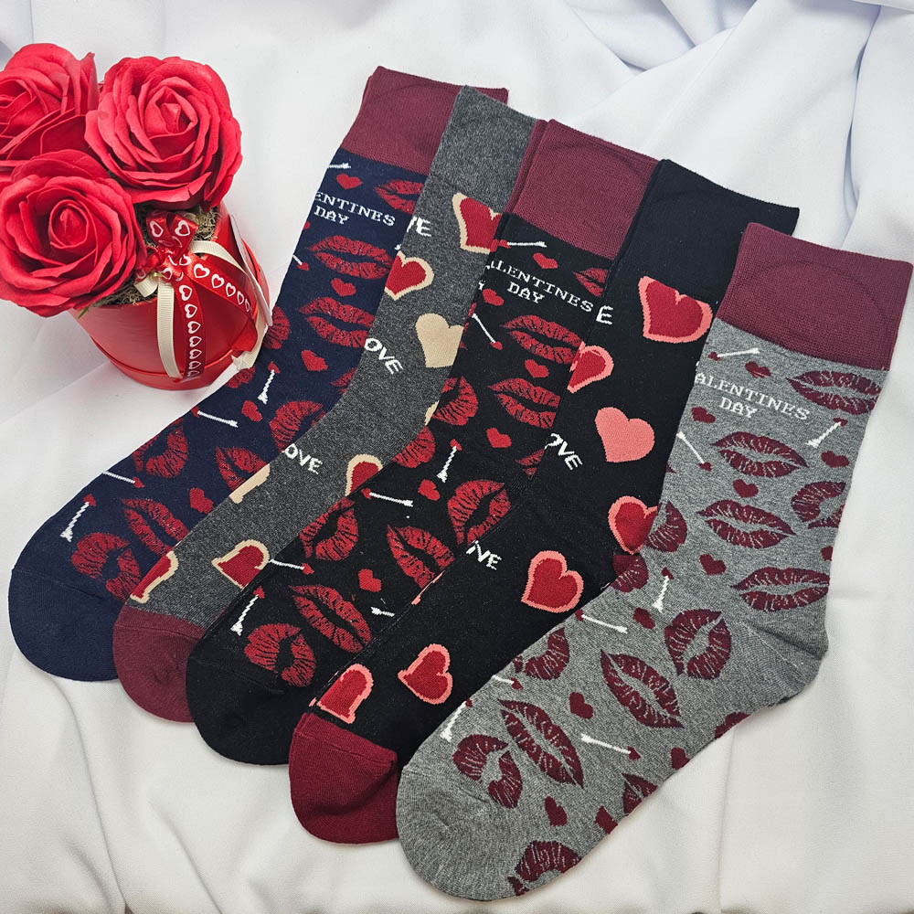 Valentin napos puszi mintás normál szárú férfi zokni 5 pár/csomag