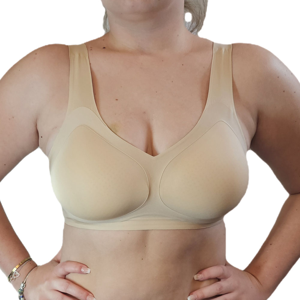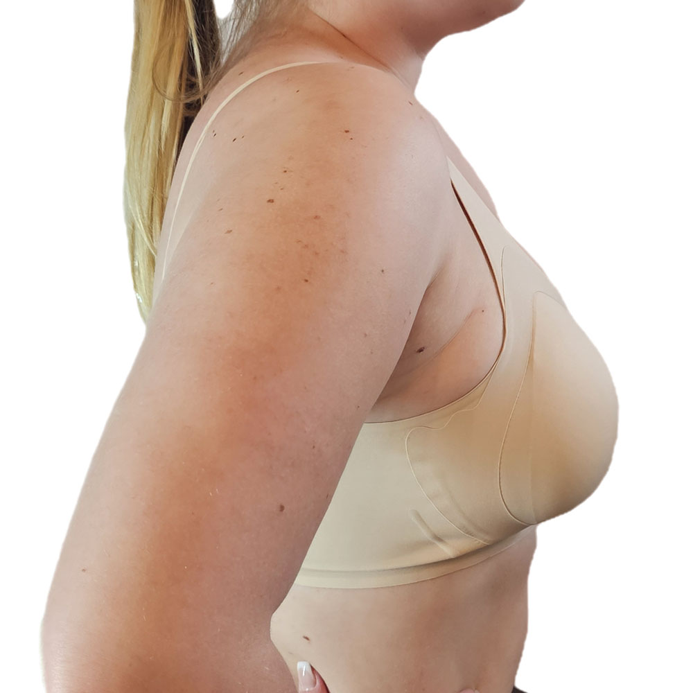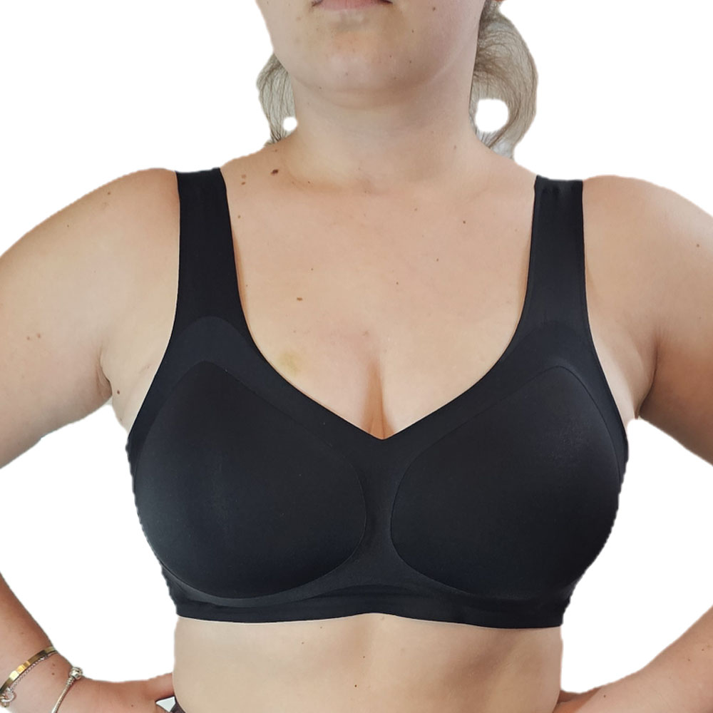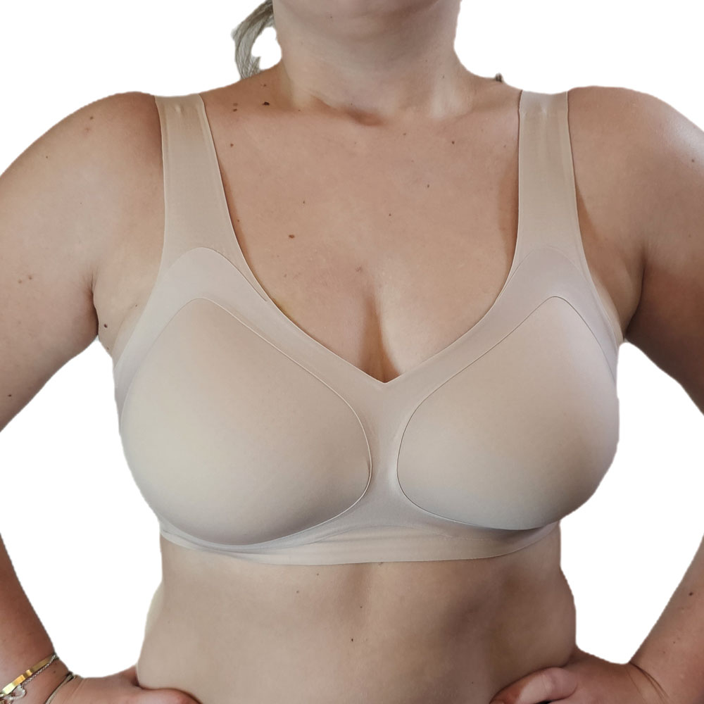 A páratlan mozgási kényelmet biztosító, széles pánttal ellátott melltartó, minden nő számára lehetővé teszi, hogy egy kis luxust érezzen saját testén. A zökkenőmentes technológia alkalmazása határozza meg a kiemelkedő használati kényelmet . A mell körüli bőr semmilyen módon nincs megnyomva. Az alsó drótok hiánya és a további merevítés azt a benyomást kelti, hogy nincs ruha a testen. Az egyedülálló technológia lehetővé teszi, hogy teljesen lélegezzen és élvezze a mozgás szabadságát. A magas komfortérzetet a finom, levegős fonal is biztosítja. Garantálja a bőr optimális légáramlását.
