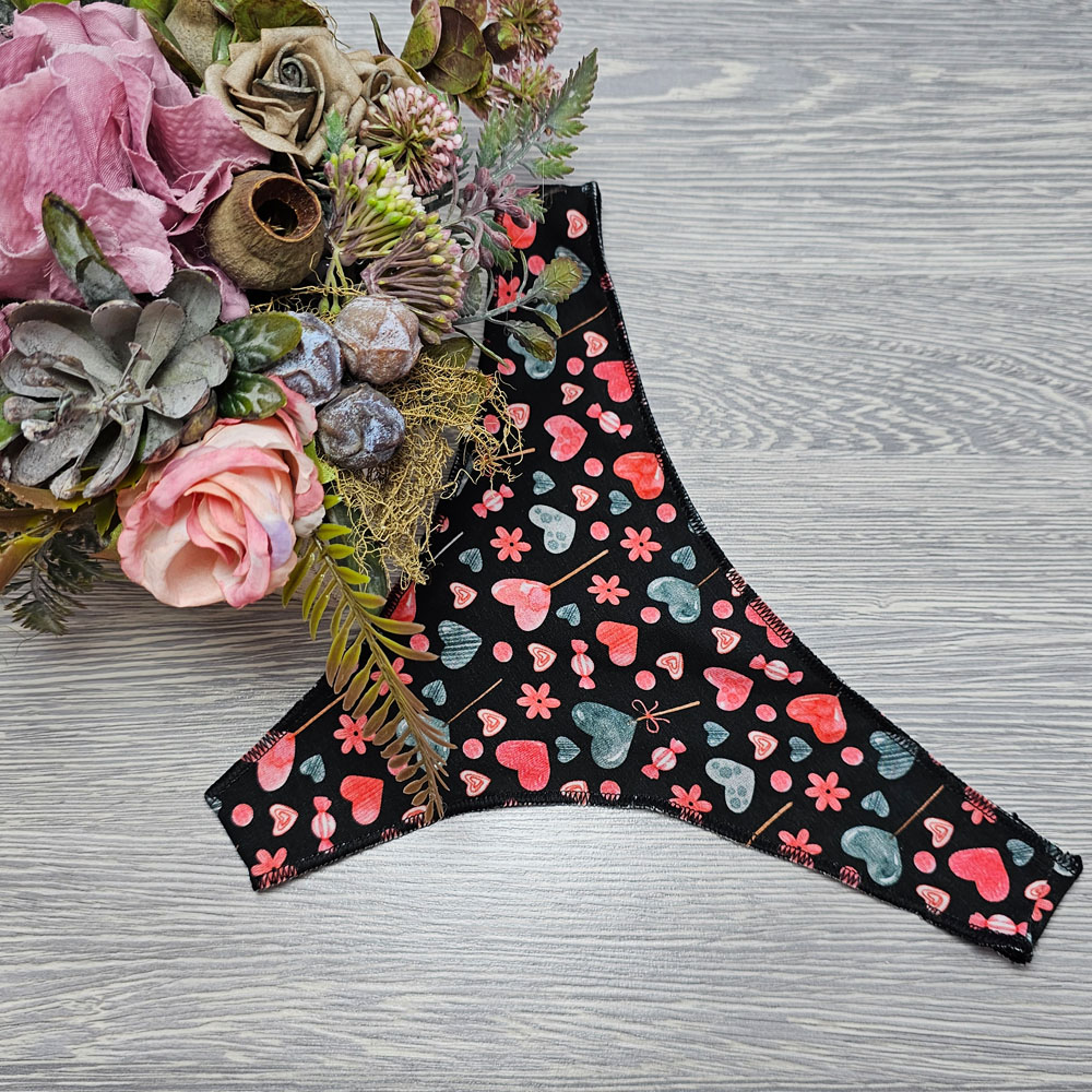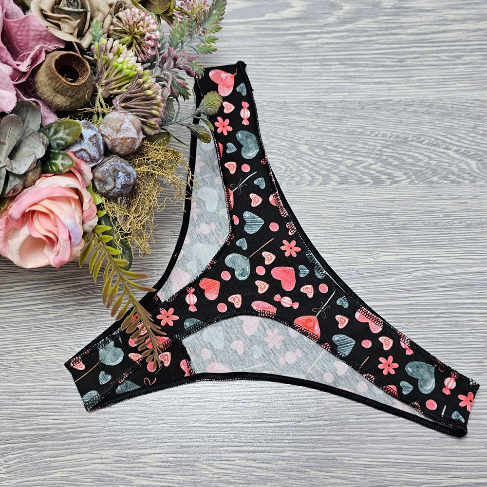 Varrat nélküli TANGA fekete SZÍVECSKE mintás