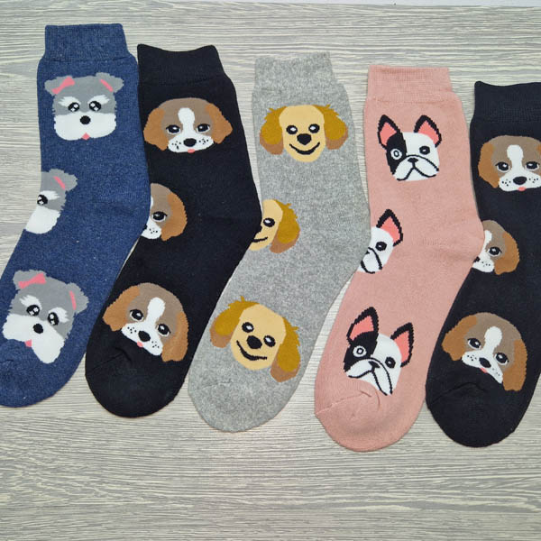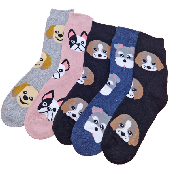 VASTAG női zokni KUTYAFEJ mintás 5 pár/cs